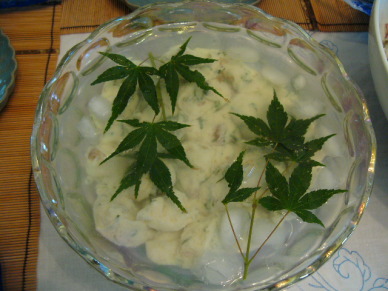 (7)鉢に氷水を張り、(5)を浮かべる。Aを小鉢に入れて添える。
