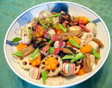(8)絹さやを色よく茹でて、矢羽根に切る。